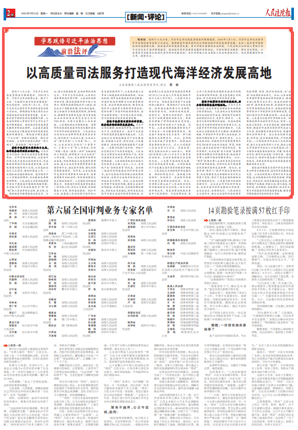党的十八大以来,习近平总书记高度重视海洋强国建设。2025年7月1日,习近平总书记主持召开中央财经委员会第六次会议,强调推进中国式现代化必须推动海洋经济高质量发展,走出一条具有中国特色的向海图强之路。推动海洋经济高质量发展,离不开稳定健康的法治环境。人民法院应如何深入贯彻习近平总书记关于海洋强国建设、推动海洋经济高质量发展的重要论述,不断加强司法服务、强化司法供给,以高质量司法服务打造现代海洋经济发展高地?本栏目特邀山东省高级人民法院党组书记、院长霍敏撰写评论文章,敬请关注。